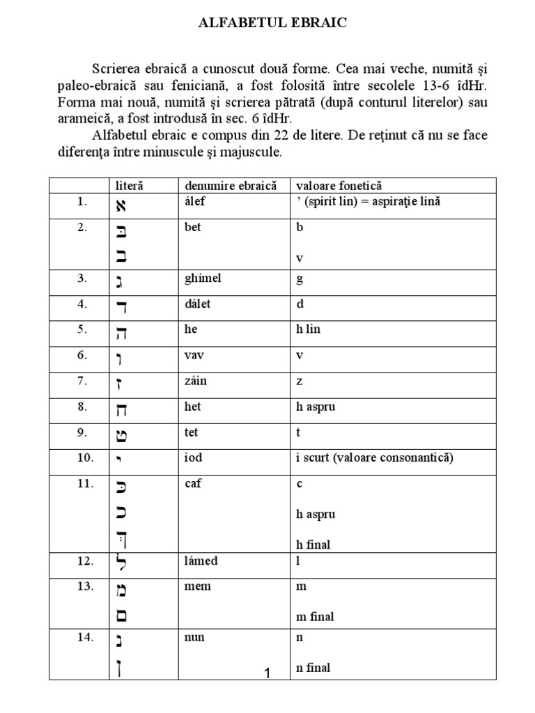 Alfabetul Ebraic Tradus In Romana