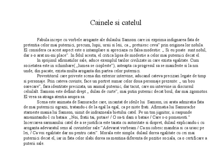 Referat Cainele Si Catelul Demonstratie Ca Este Fabula 338003 Graduo