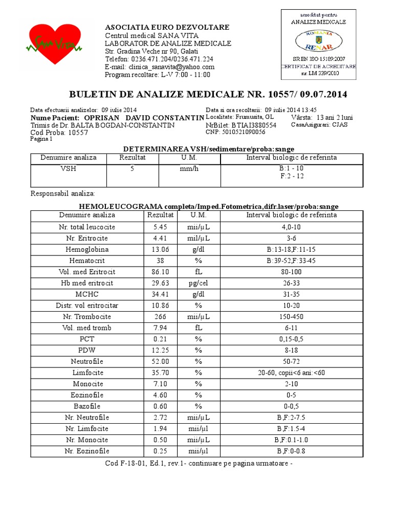 Centrul Medical Sanavita Str Gradina Veche Nr 90 Galati 2020