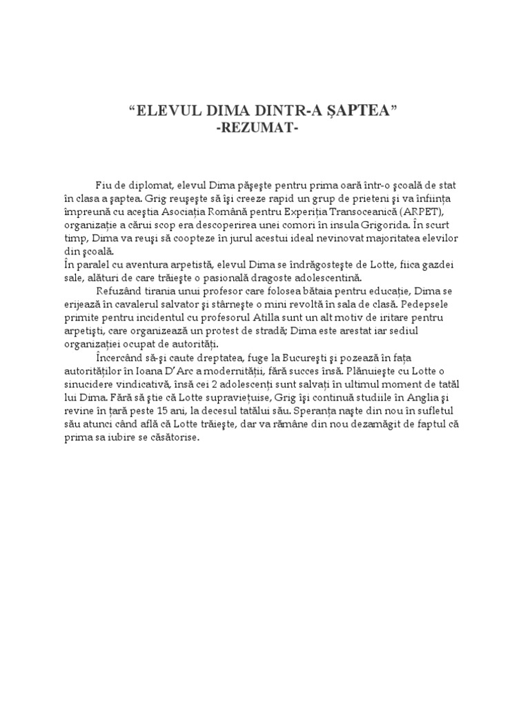 Elevul Dima Dintr A Saptea Rezumat