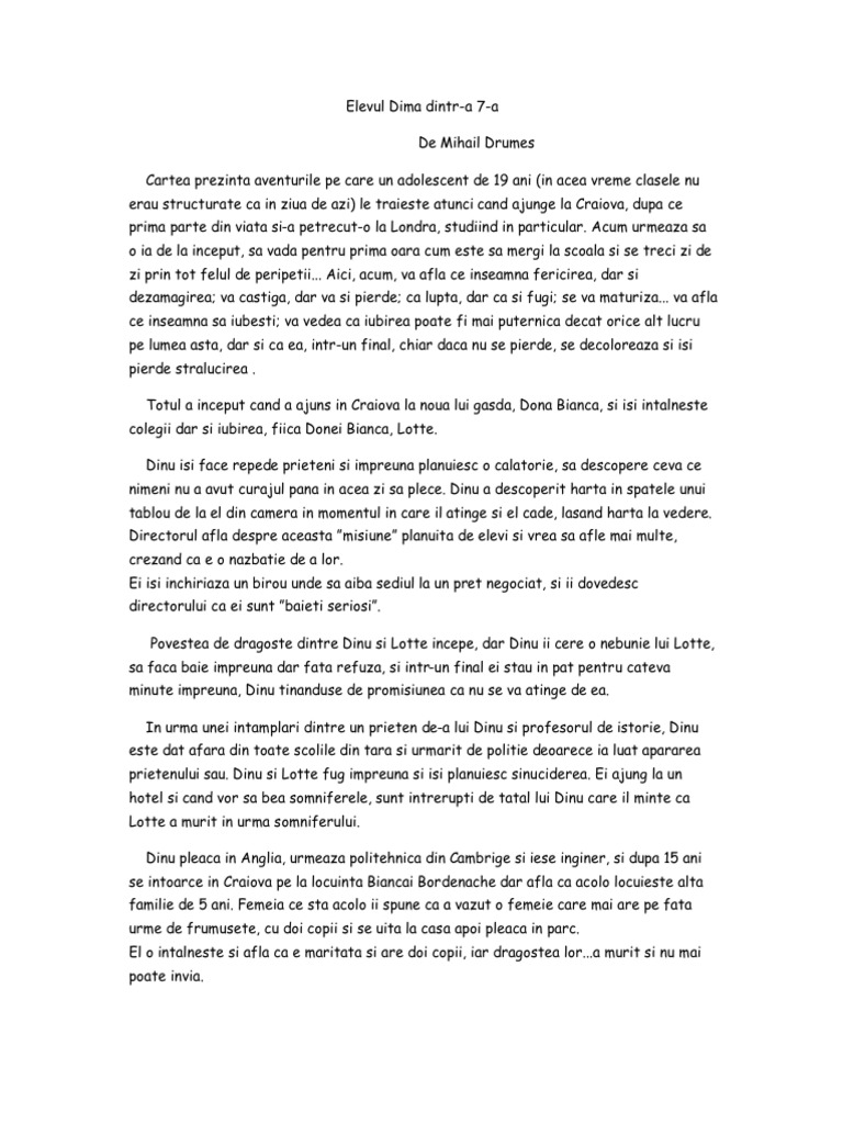181034642 Mihail Drumes Elevul Dima Dintr A Saptea Pdf Pdf Document