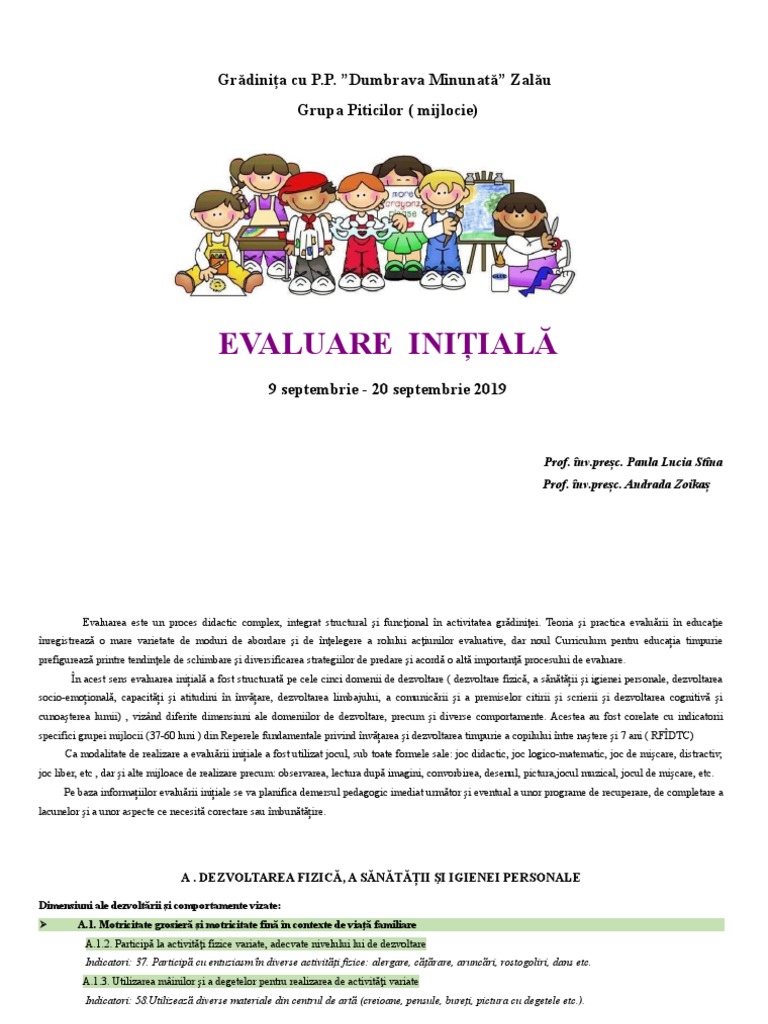 Doc Evaluare Initiala Nivel I 3 5 Ani Grupa Mijlocie An Scolar 2016 2017 Testare Iniţială Bogdan Dorobantu Academia Edu