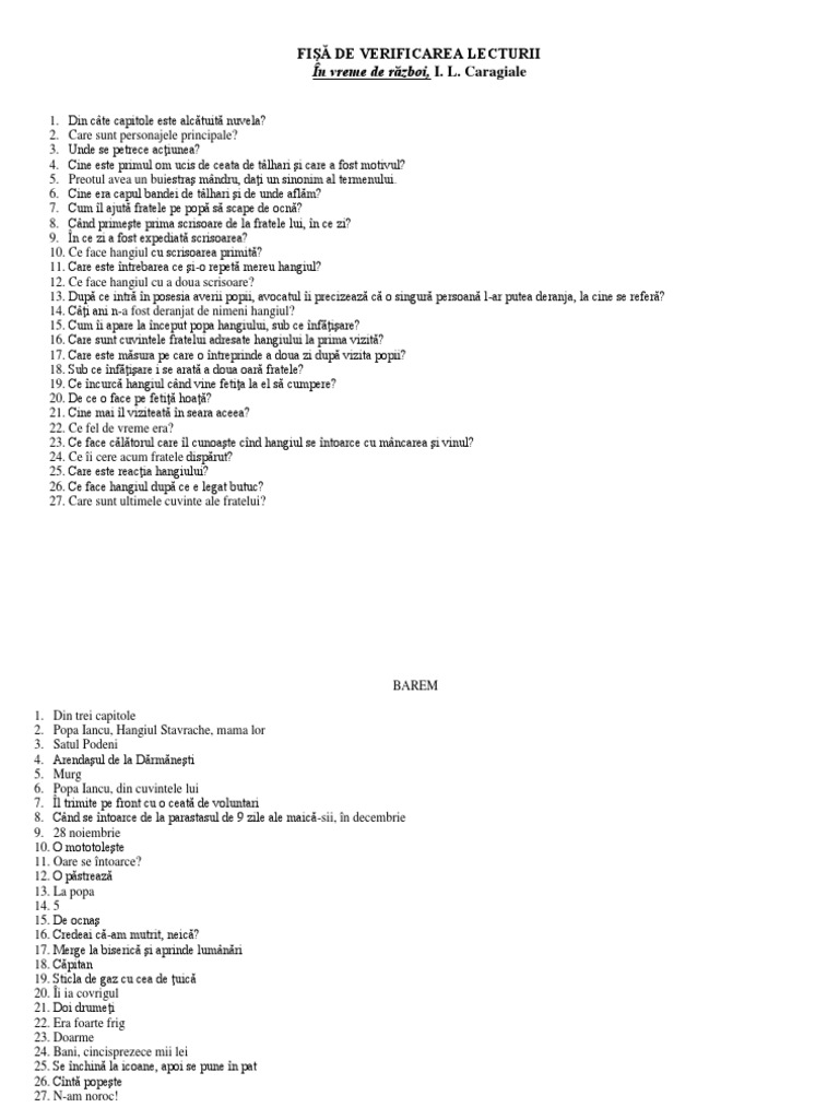 Fisa De Lectura In Vreme De Razboi Docx