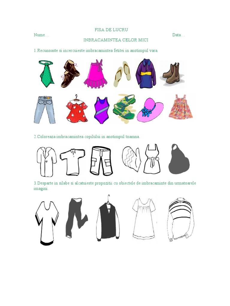 Imbrăcăminte De Toamnă Planșă Cu Vocabular