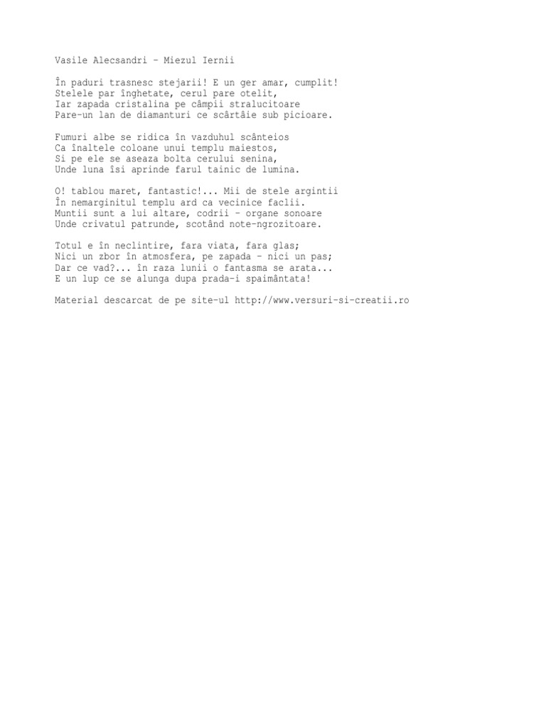Referat Poezia Miezul Iernii De Vasile Alecsandri 341627 Graduo