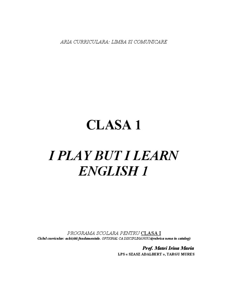 Optional Lb Engleza Clasa A Ia Si A Iia