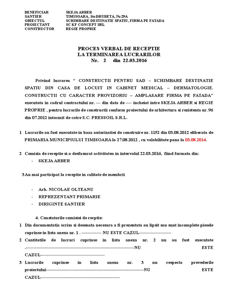Cum Obtii Un Proces Verbal De Receptie A Lucrarilor In 2019 Fara Spaga